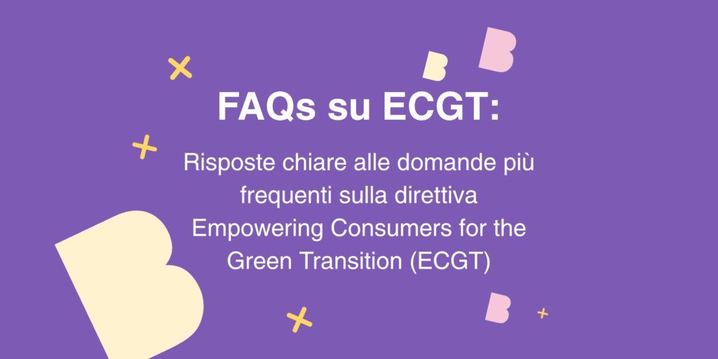 In questa pagina trovi risposte chiare alle domande più frequenti sulla direttiva Empowering Consumers for the Green Transition (ECGT) e sulle sue implicazioni per la certificazione B Corp. Abbiamo raccolto e sintetizzato i principali dubbi emersi nella nostra community, per supportare tutte le aziende interessate in questa fase di transizione normativa.